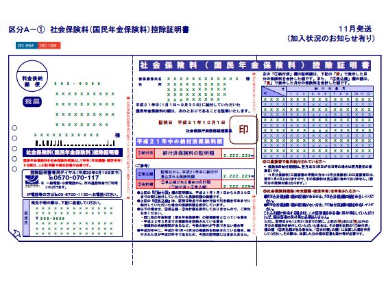 国民年金保険料の控除証明書は10月末に発送されます 色はいろいろ