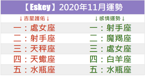 Eskey 2020年11月運勢 小鐵星座
