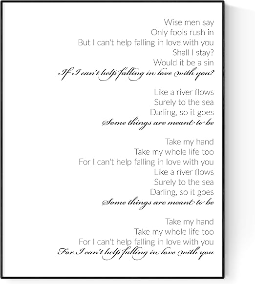 Elvis Presley Words Song Lyric Lyrics Music Wall Can T Help Falling In Love Wall Hangings Home Furniture Diy Plastpath Com Br