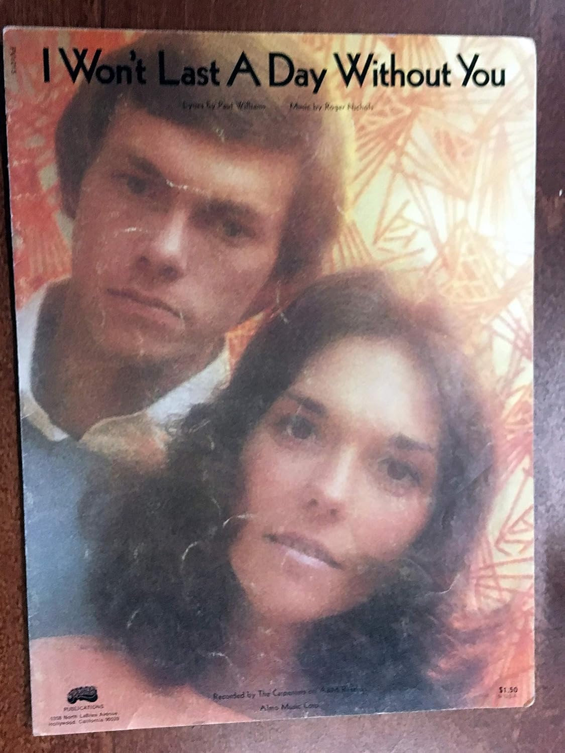 Amazon Com I Won T Last A Day Without You Roger Nichols Sheet Music 1972 Excellent Condition As Performed By The Carpenters Pictured Entertainment Collectibles