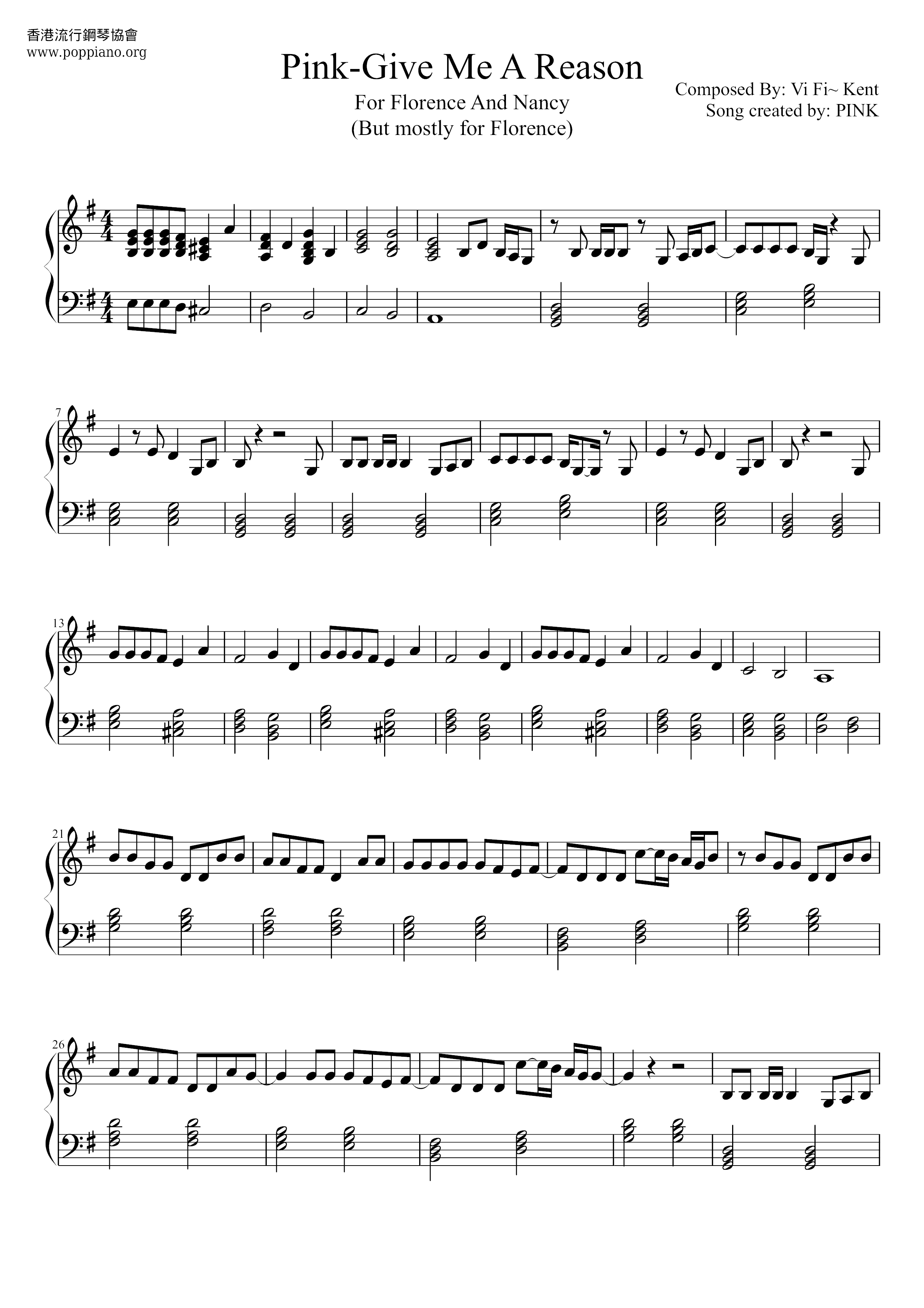 Just Give Me A Reason Sheet Music Pink Sheetmusic Free Com