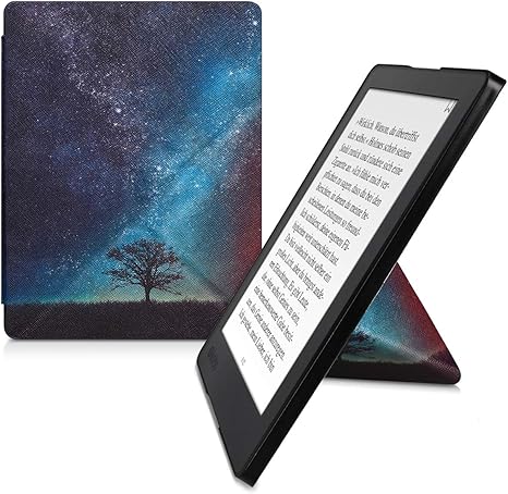Amazon Com Kwmobile Origami Case Compatible With Kobo Aura H2o Edition 2 Slim Premium Pu Leather Cover With Stand Cosmic Nature Blue Grey Black Mp3 Players Accessories