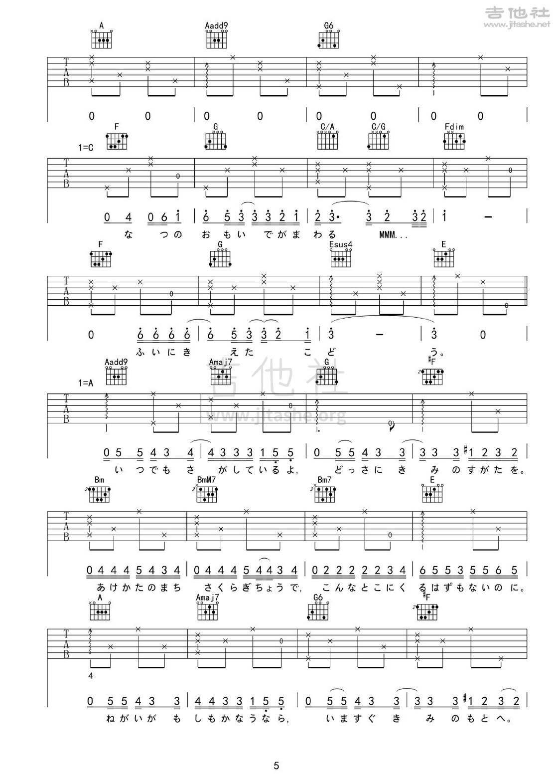 秒速五厘米 One More Time One More Chance吉他谱 图片谱 弹唱 动漫游戏 Acg