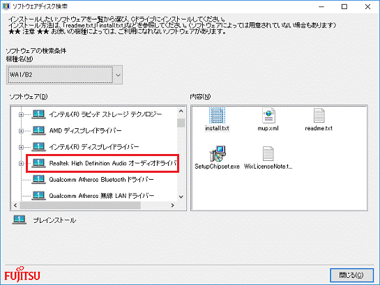 富士通q A サウンドドライバー Realtek High Definition Audio オーディオドライバー V 6 0 1 8059 64ビット プレインストール版 の再インストール方法を教えてください Fmvサポート 富士通パソコン