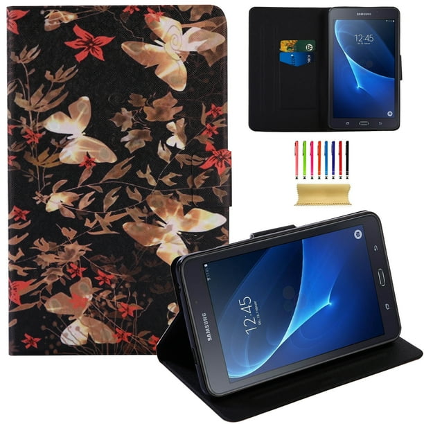 Galaxy Tab A 7 0 Case Allytech Slim Fit Pu Leather Flip Folio Stand Wallet Smart Case Covers Support Auto Wake Sleep For Samsung Galaxy Tab A 7 0 Sm T280 T285 Butterfly Flower Walmart Com