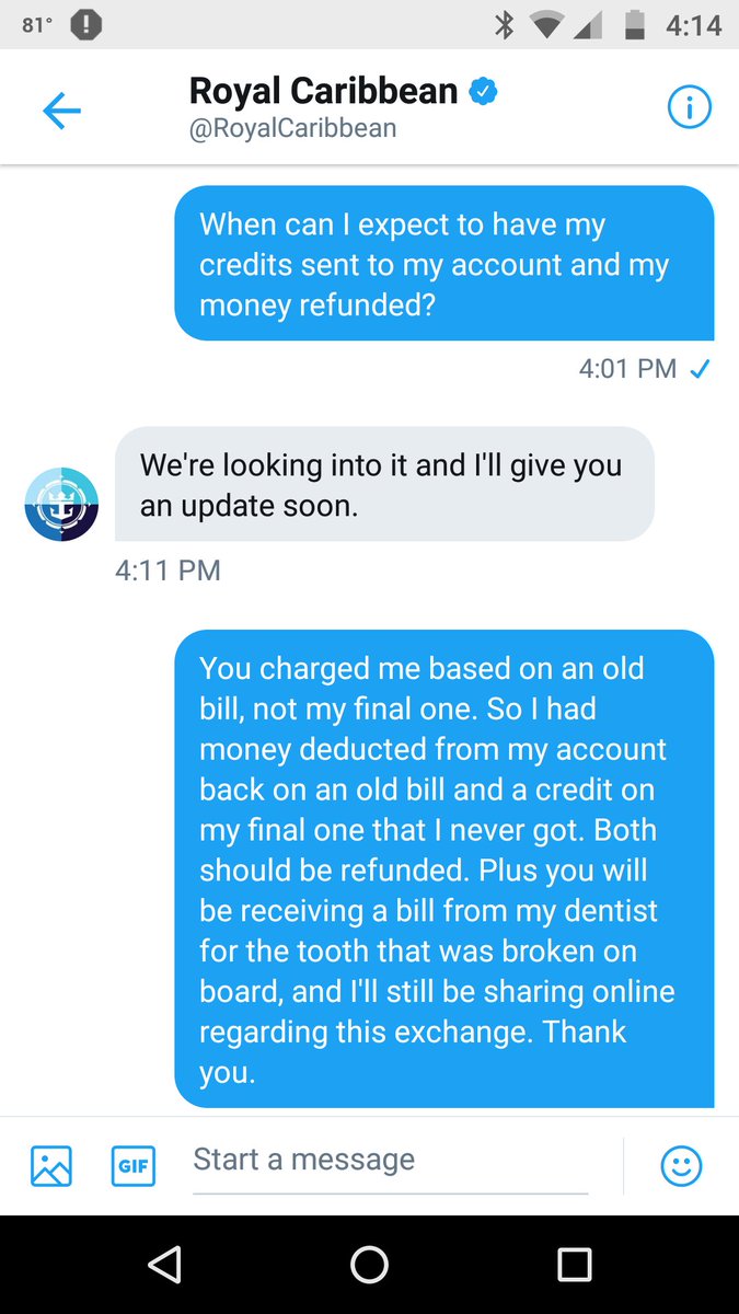 Royal Caribbean V Twitter Thank You For Your Patience We Re Still Reviewing The Charges I Ll Reach Out Once I Have An Update