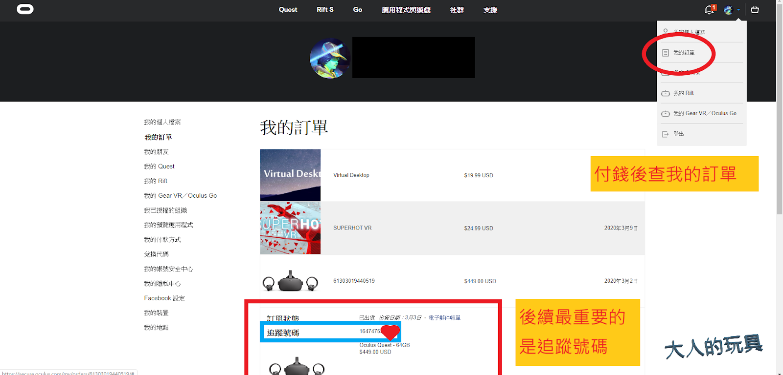 大人的玩具1號 Oculus官網上購買oculus Quest一次到位