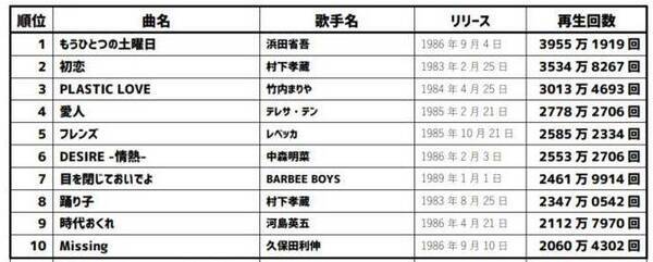 1位が浜田省吾 もうひとつの土曜日 は意外 ナットク 昭和ソングのyoutube再生回数ランキングが話題に ガジェット通信 Getnews
